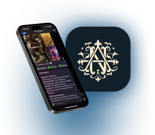 • Просит пользователя чётко сформулировать запрос. • Предлагает вытянуть 3 карты из разных колод. • Анализирует значение каждой карты и формирует связанное заключение. • Добавляет список маленьких шагов для дальнейшего исследования темы.